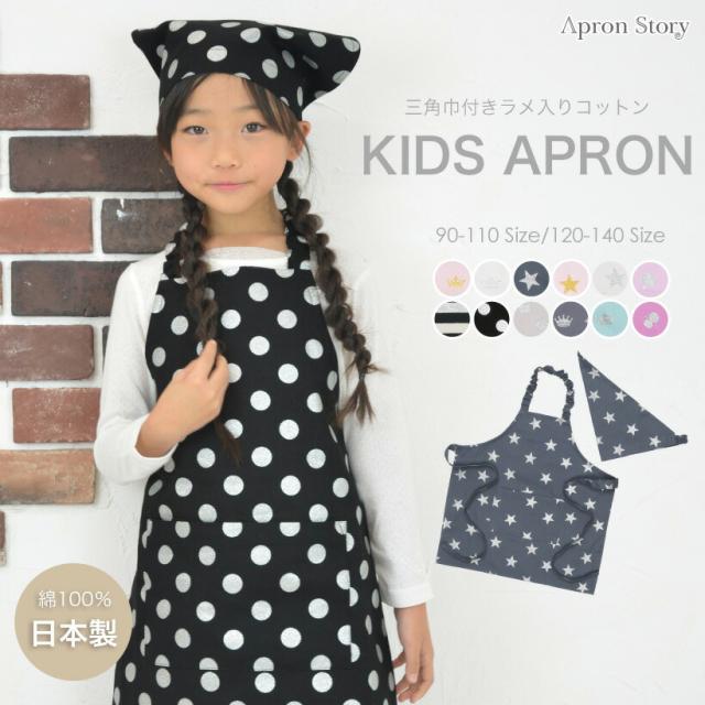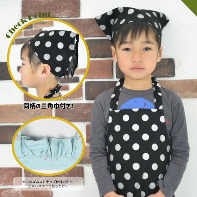 【子供】キッズエプロン 三角巾セット 男の子 女の子 日本製 ギフト プレゼント おしゃれ かわいい【メール便1枚のみ対応可能】【N】【Y】