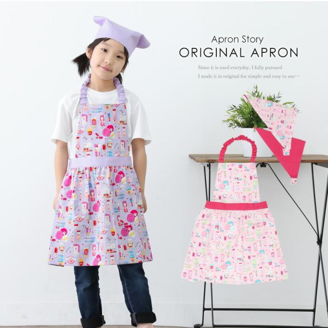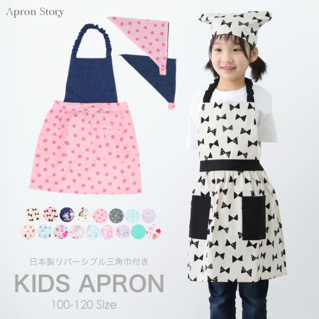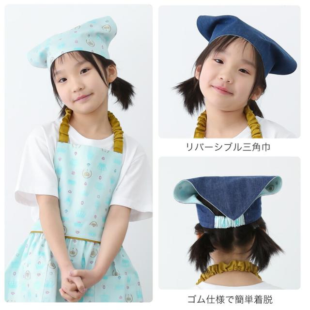 【子供】キッズエプロン 三角巾セット 女の子 日本製 ギフト プレゼント おしゃれ かわいい【メール便1枚のみ対応可能】【N】【Y】