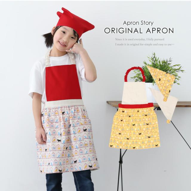 【子供】キッズエプロン 三角巾セット 女の子 日本製 ギフト プレゼント おしゃれ かわいい【メール便1枚のみ対応可能】【N】【Y】