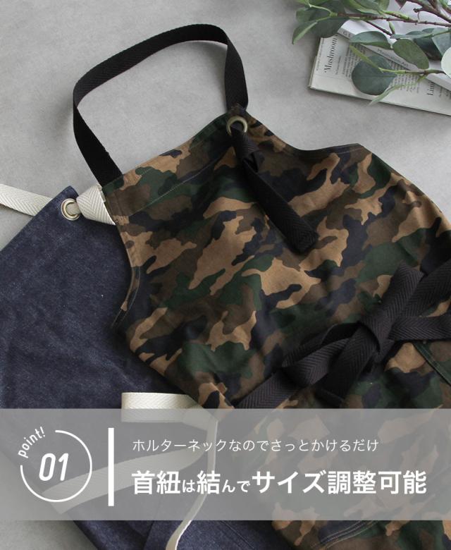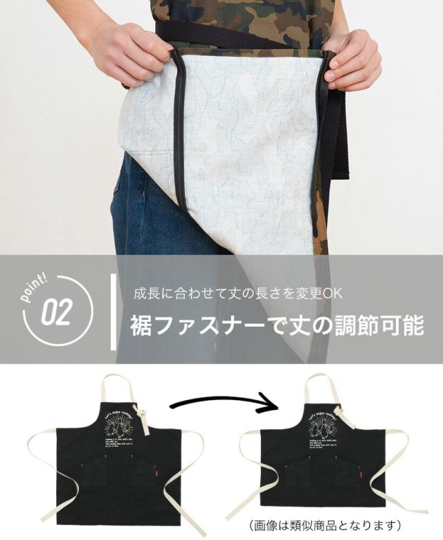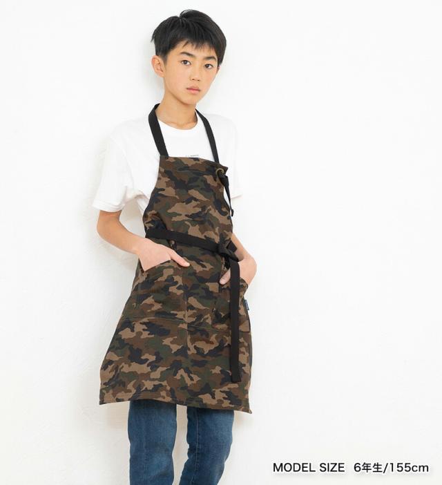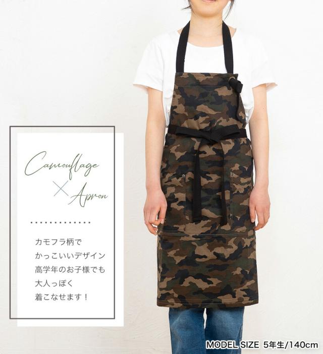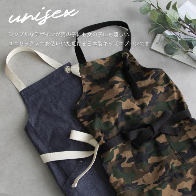 キッズエプロン 日本製 迷彩 カモフラ デニム ヒッコリーキッズ 100〜160 おしゃれ かわいい ギフト プレゼント【メール便1枚のみ送料無料】【N】【M】【刺繍対象】