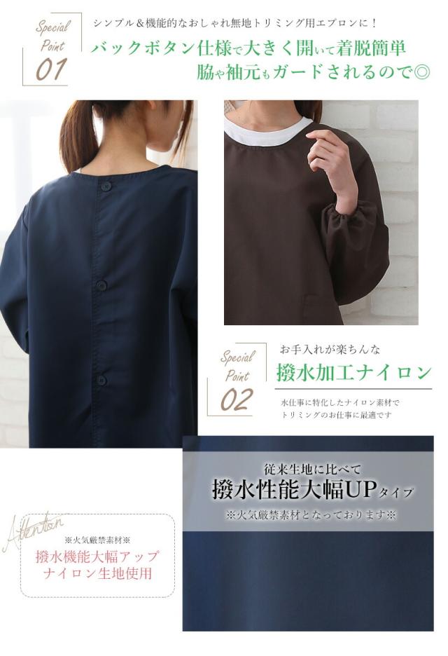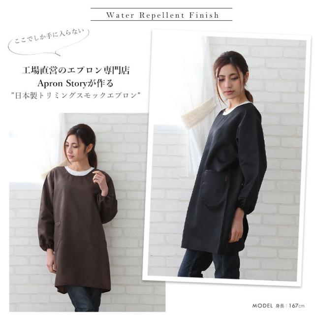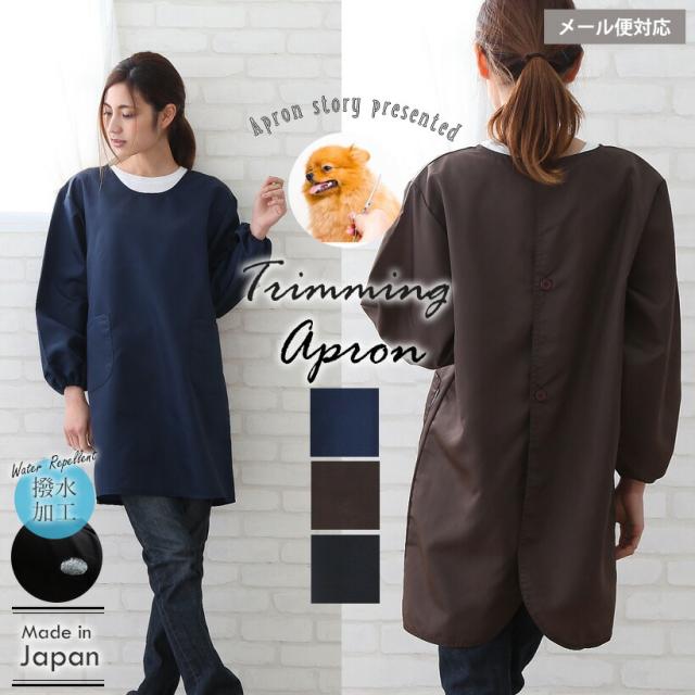 トリミングエプロン(スモック) 日本製 撥水 水に強い 割烹着 かっぽう着 プレゼント ギフト 母の日【メール便1枚のみ対応可能】【N】【Y】
