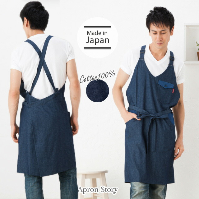 人気のデニム生地を使用したVネックデザインの男性用エプロン。 デニムの2色使いもさりげなくおしゃれなエプロン。 肩紐がベルトのようになっていて、片手でも簡単に調節ができて、 身幅も大きめ作っているため、大きいサイズの方でも着用が可能です。 両側に1つずつのポケットと、胸にもふた付きのポケット付。 ギフトやプレゼントにも人気の高品質エプロンは、 工場直営のエプロン専門店だからできる、丁寧な作りの日本製エプロンです。