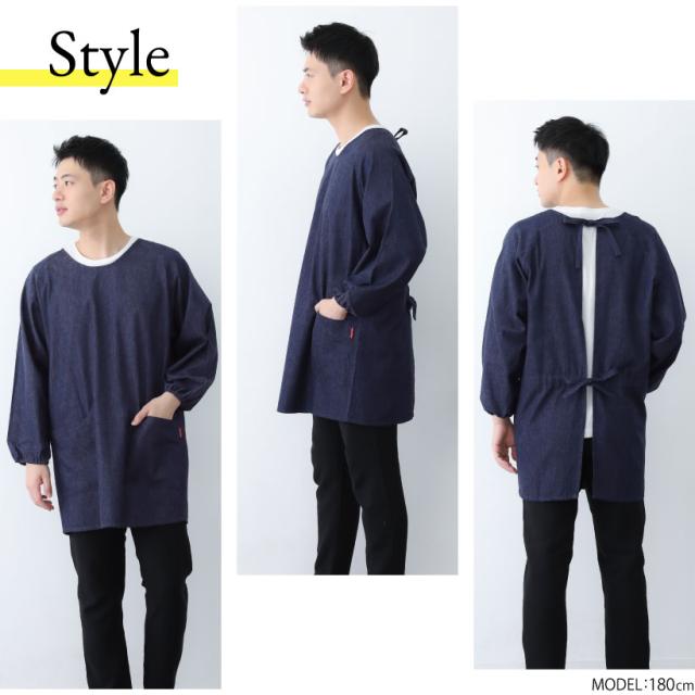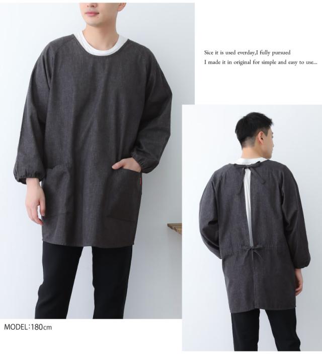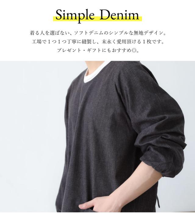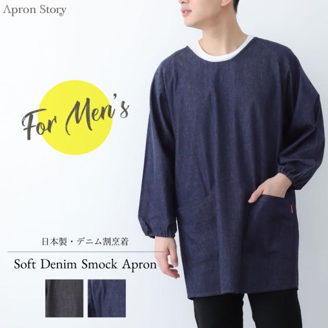 【日本製】ソフトデニムメンズ割烹着 男性用 大きいサイズ 作業着 作務衣 割烹着 かっぽう着 無地 おしゃれ プレゼント ギフト【メール便1枚のみ送料無料】【N】【M】