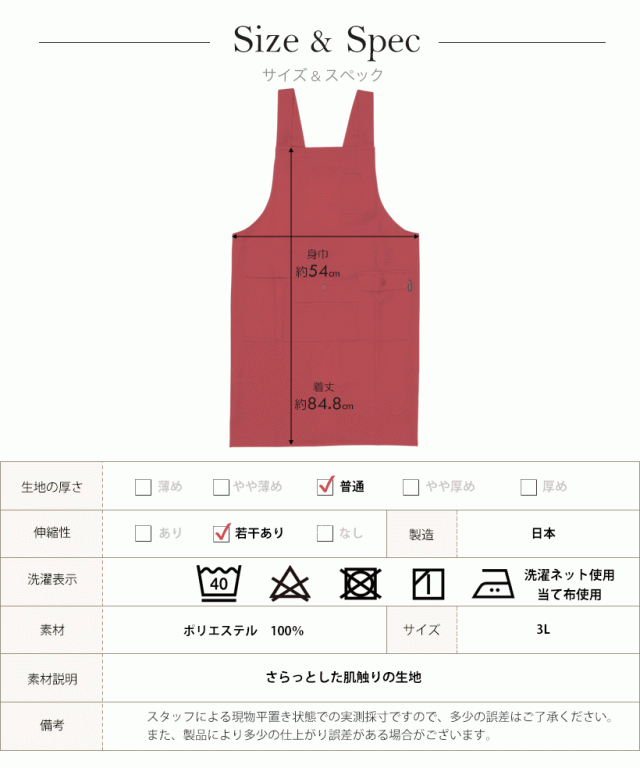 大きめサイズのシンプルH型エプロン【3Lサイズ】 大きいサイズ 日本製 男女兼用 プレゼント ギフト 母の日【メール便1枚のみ対応可能】【N】【Y】