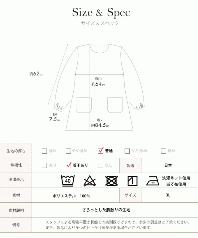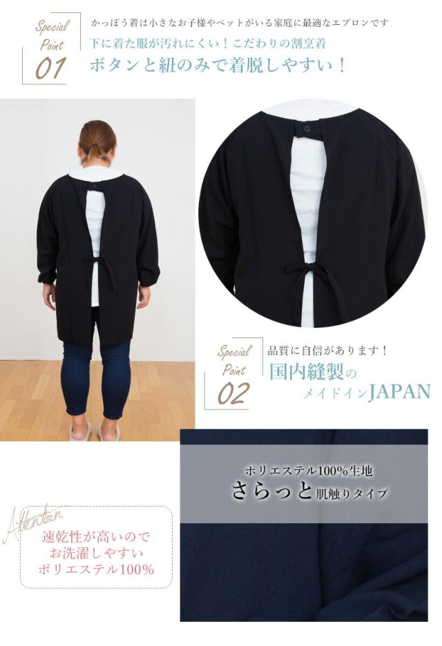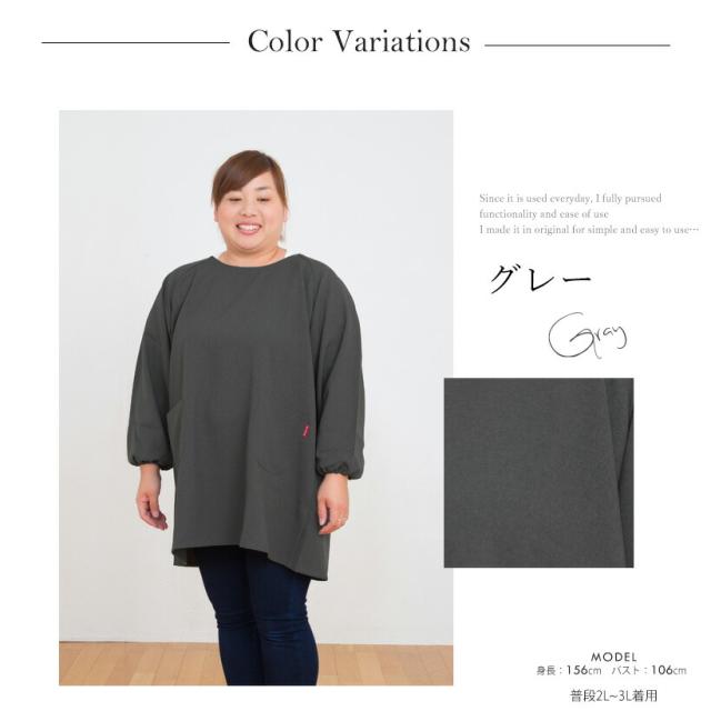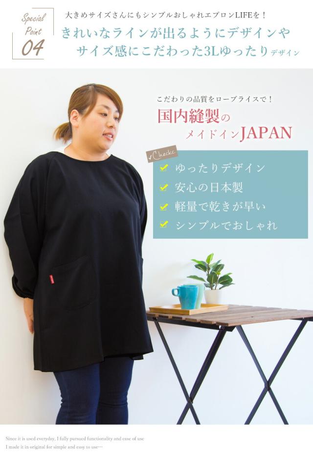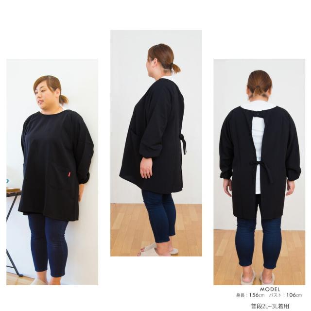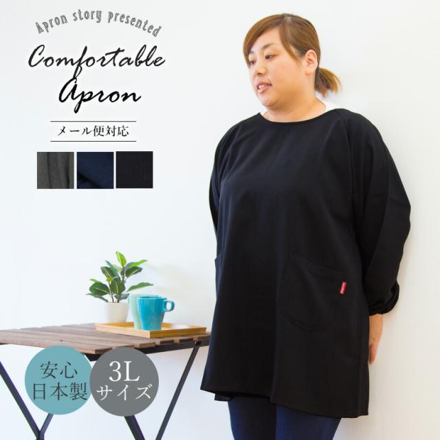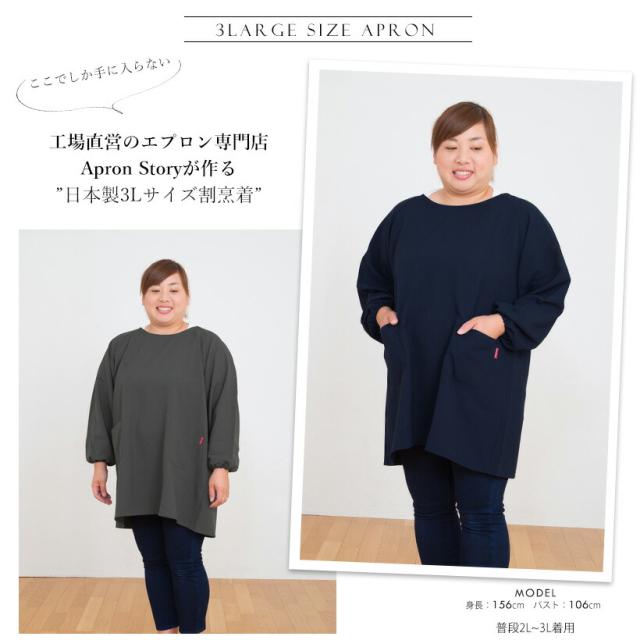 大きめサイズのシンプル割烹着【3Lサイズ】 日本製 スモック かっぽう着 無地 おしゃれ プレゼント ギフト 母の日【メール便対応可】【N】【Y】