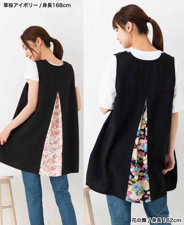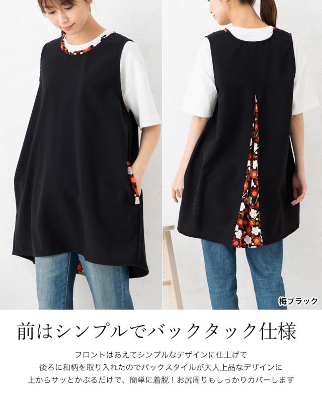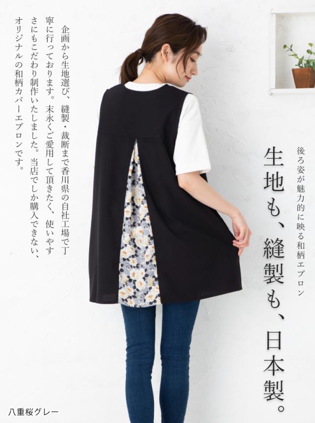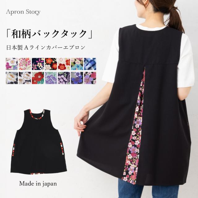 和柄バックタックカバーエプロン【日本製】ギフト プレゼント おしゃれ 和モダン 母の日【N】【M】