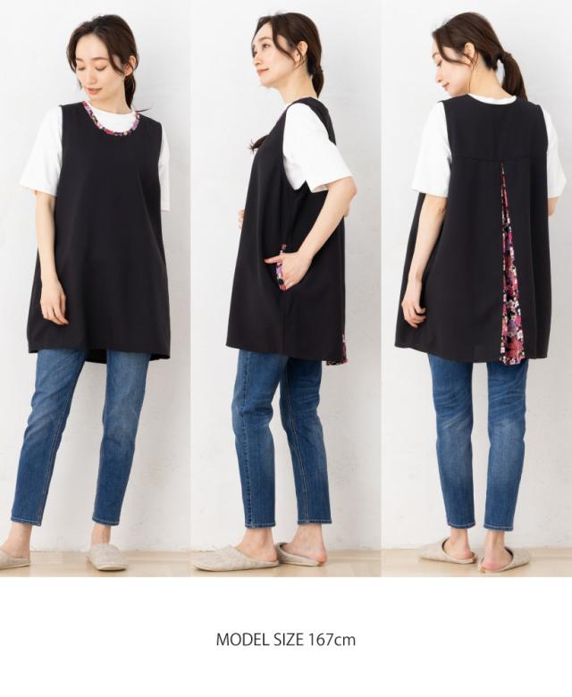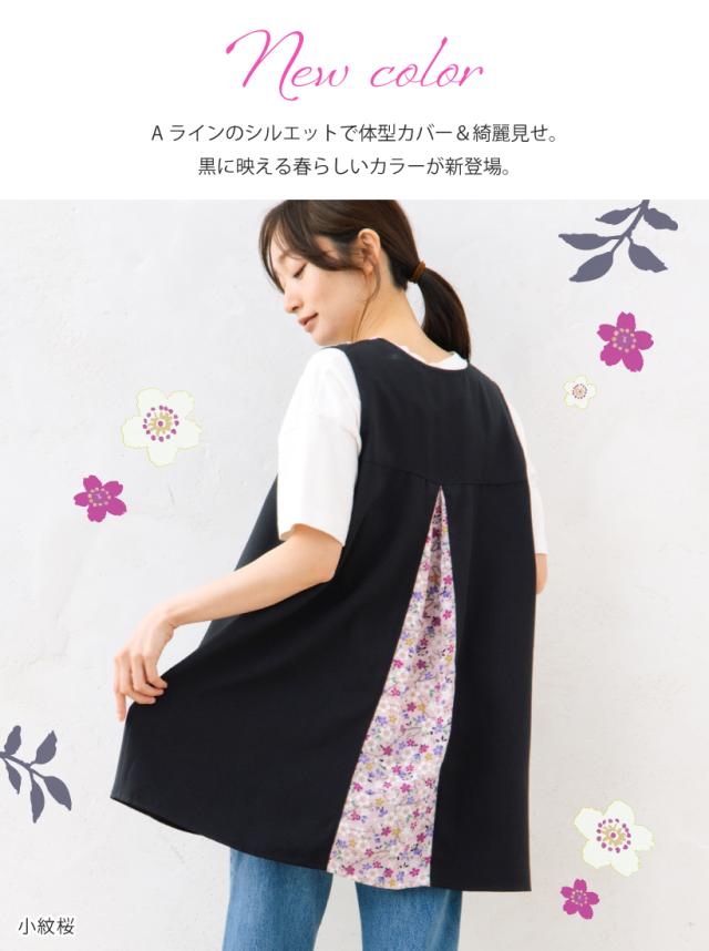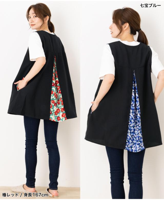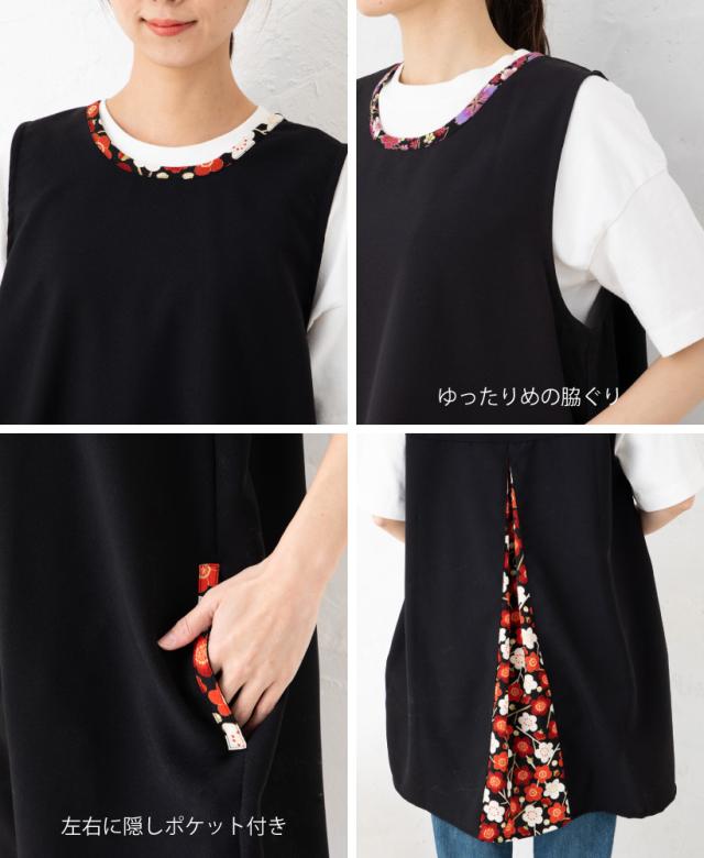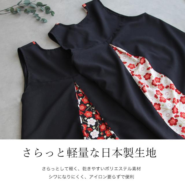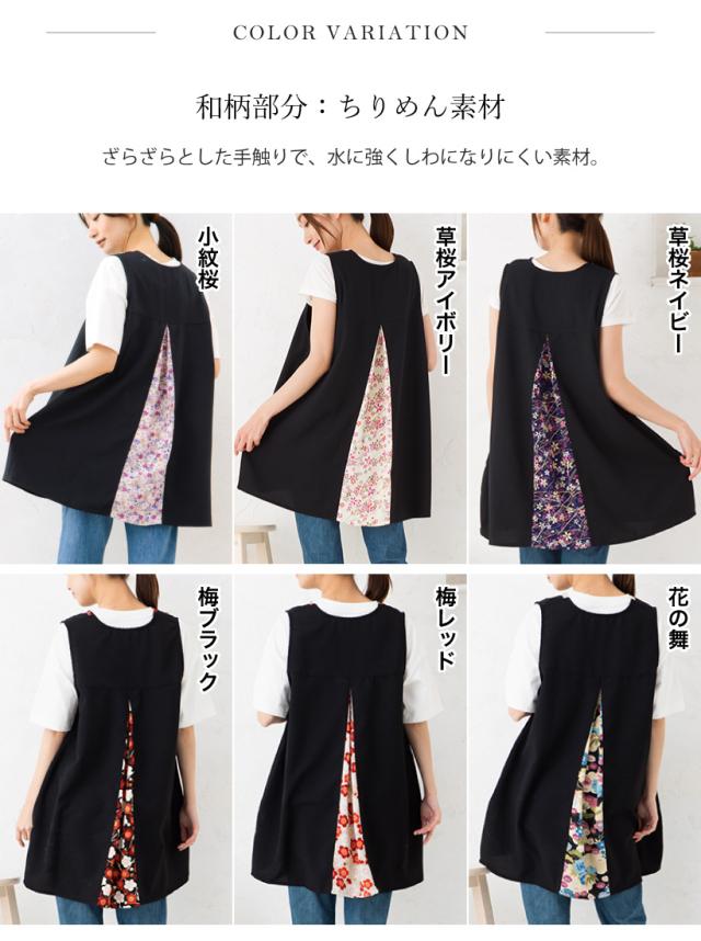 \高品質&日本製/着たままお出かけもできる、後ろからひらりとみえる上品な和柄が印象的◎な、和柄カバーエプロン。面倒な腰紐や、ボタンがないので上からかぶるだけで着用できます!。軽い・速乾性がある・シワになりにくいポリエステル生地を本体に使用し、日常的にも使いやすく、母の日のプレゼント・ギフトとしてもおすすめです。