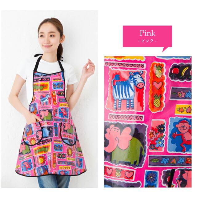 【メール便送料無料】オイルクロス動物柄エプロン 日本製 水に強い 撥水 汚れに強い 撥油 かわいい おしゃれ プレゼント ギフト 母の日【N】【M】