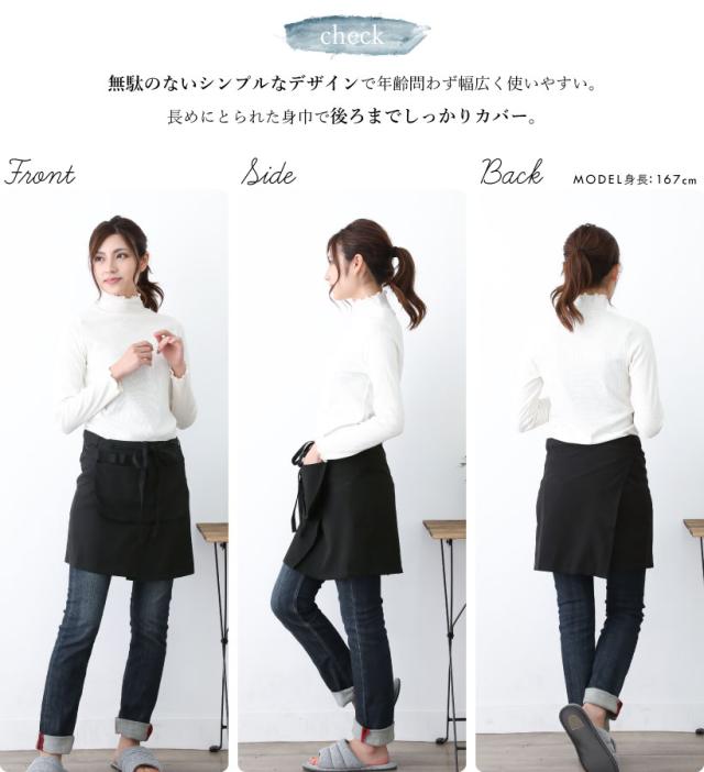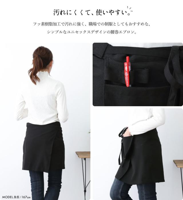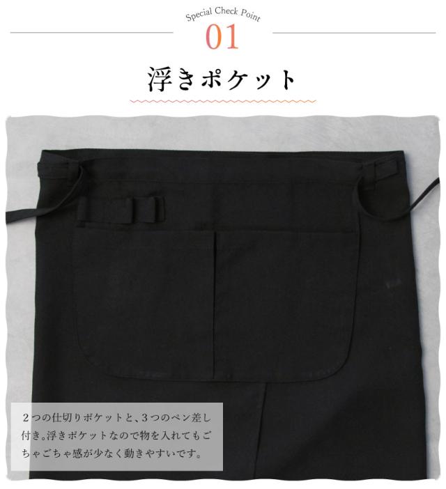撥水ギャルソンエプロン カフェエプロン 腰巻 浮きポケット 無地 シンプル おしゃれ かわいい プレゼント ギフト 母の日【メール便1枚のみ対応可能】【N】【Y】