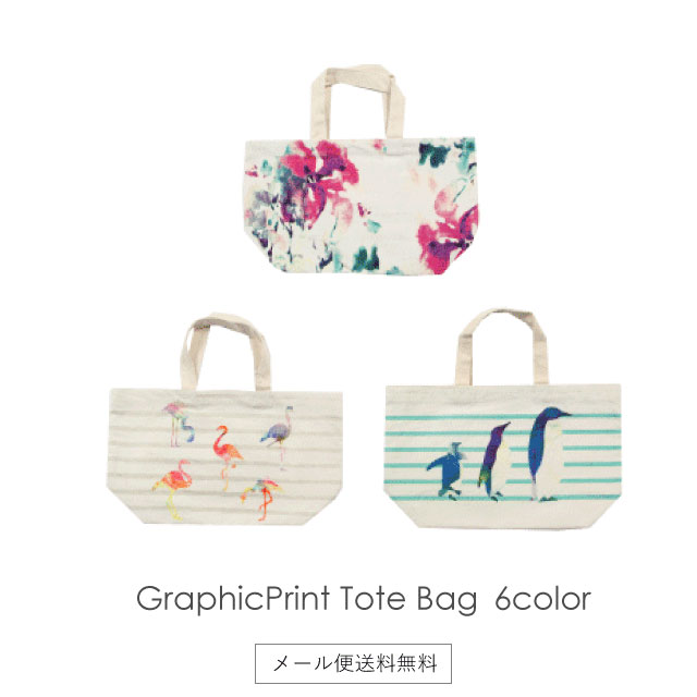 トートバッグ 花柄 デジタルプリント 小さい キャンバス トート コットン100% グラフィック ペンギン フラミンゴ ギフト プレゼント 母の日【メール便1枚のみ送料無料】【N】【M】