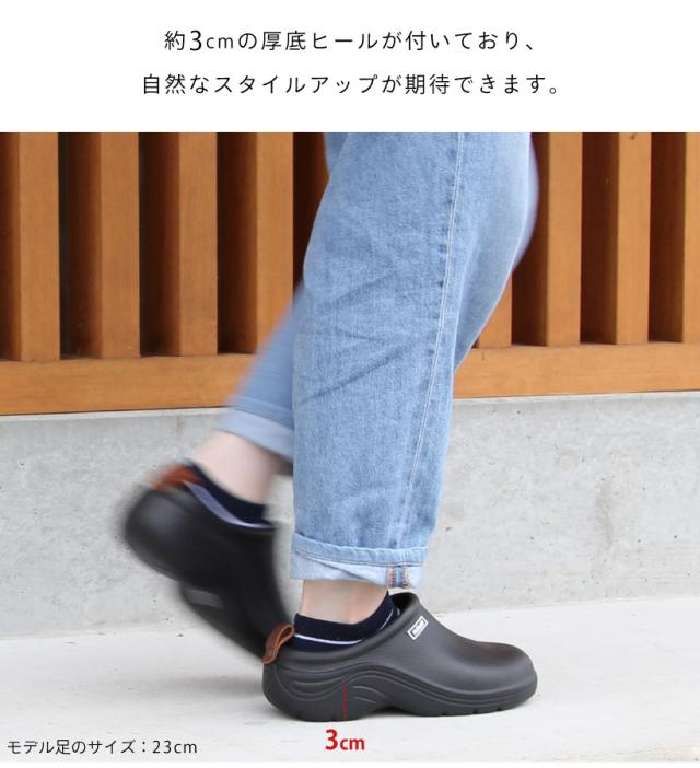 つま先がころんと丸く、シンプルでかわいらしいデザインのEVAスリッポン。着脱も簡単で、リラックスして履ける一足。約3cmの厚底ヒールが付いており、自然なスタイルアップが期待できます。カジュアルなコーディネートや、シンプルなコーデにマッチするオススメアイテムです。