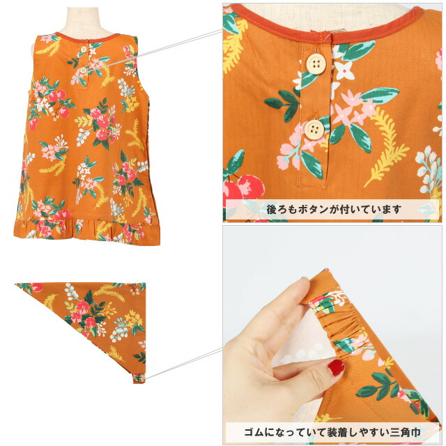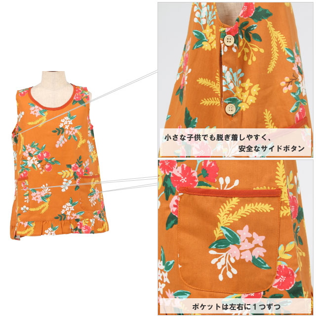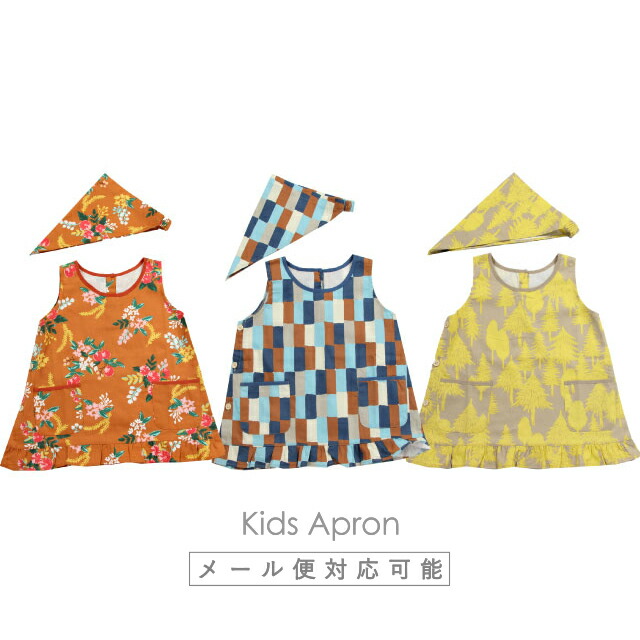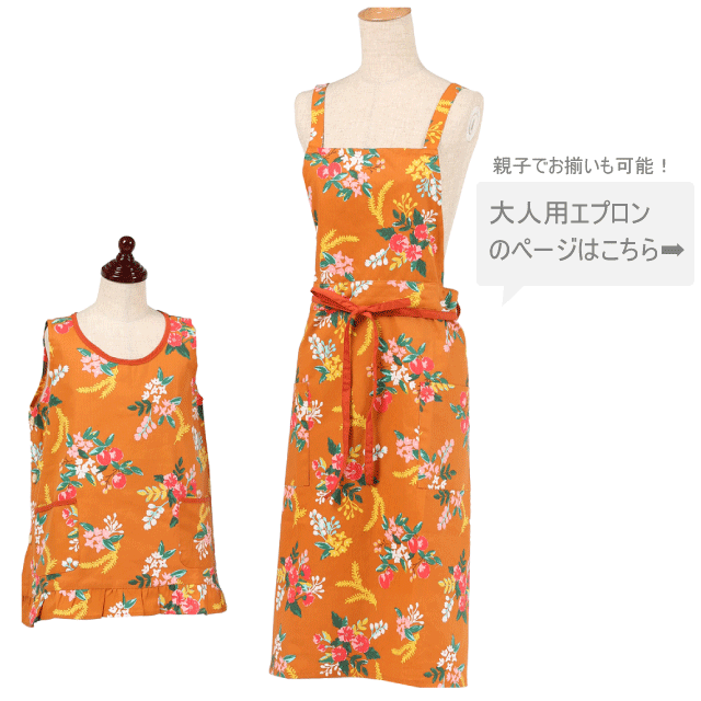 【メール便対応可】ラッピンキッズエプロンS【三角巾セット】 子ども用 110 5〜6歳 ゴムタイプ サイドボタンエプロン かわいい 女の子 親子お揃い【Y】