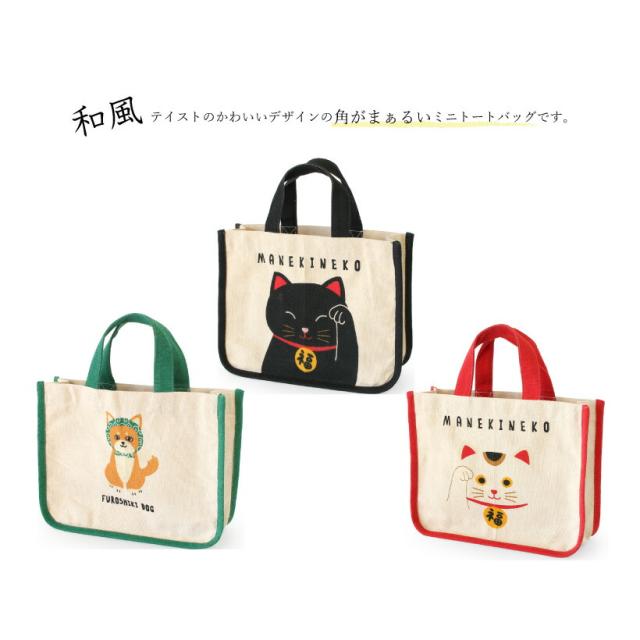 かどまるミニトート トートバッグ キャンバス おしゃれ 柴犬 猫 招き猫【メール便送料無料】【N】【M】