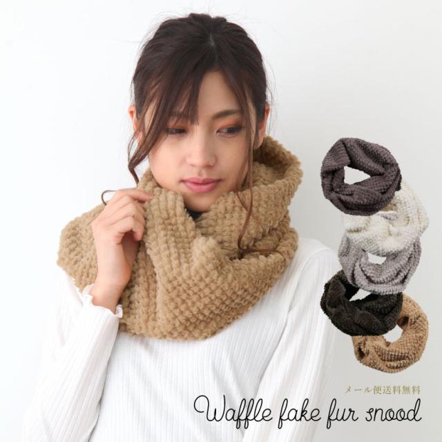 【メール便1枚のみ送料無料】ワッフルフェイクファースヌード レディース ふわふわ おしゃれ【M】