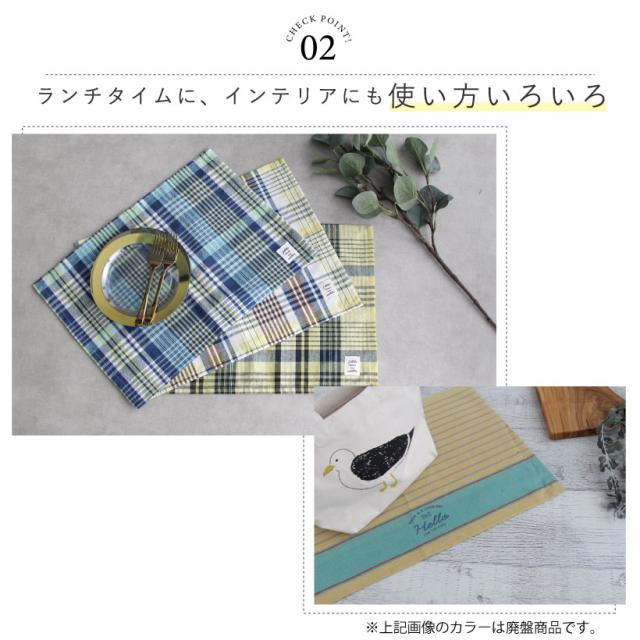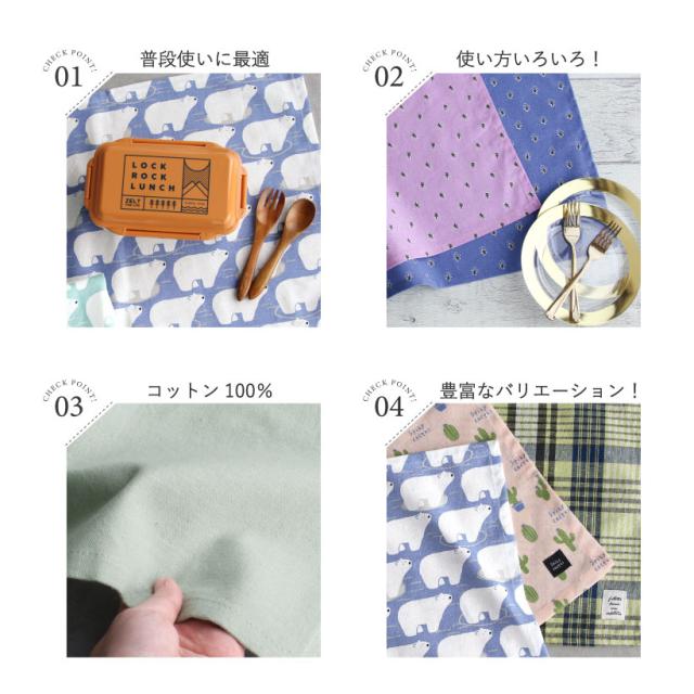 シンプルでおしゃれなデザインのランチクロス。お弁当等のランチタイムに活躍するランチクロスは大人はもちろん、お子様の小学校や幼稚園の給食等でも便利。1枚布の作りで、お手入れも楽ちん。かわいくておしゃれなデザインは大人も子どももうれしい。ランチョンマットととして家の中での食事にはもちろんのこと、インテリアとしてもお使いいただける便利なランチマット。