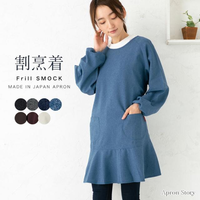 ラグランフリル割烹着 日本製 エプロン かわいい おしゃれ スモック プレゼント ギフト 母の日【メール便1枚のみ対応可】【N】【Y】