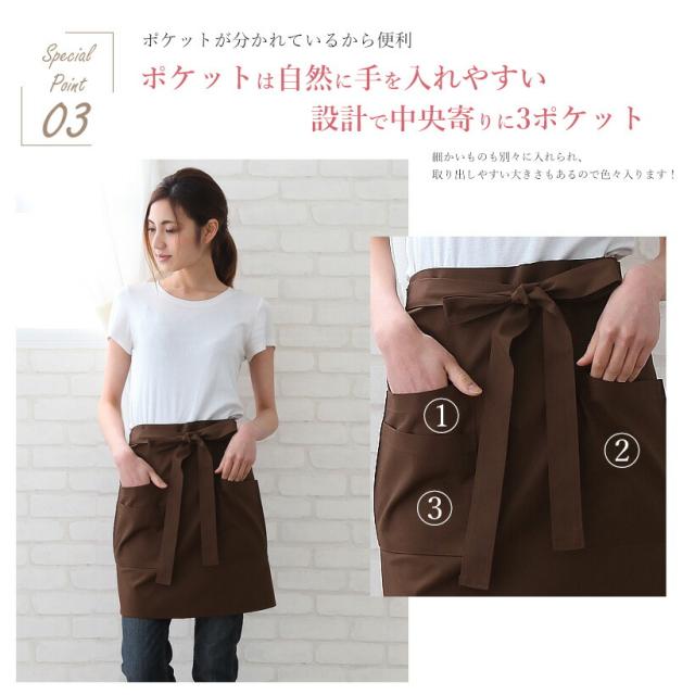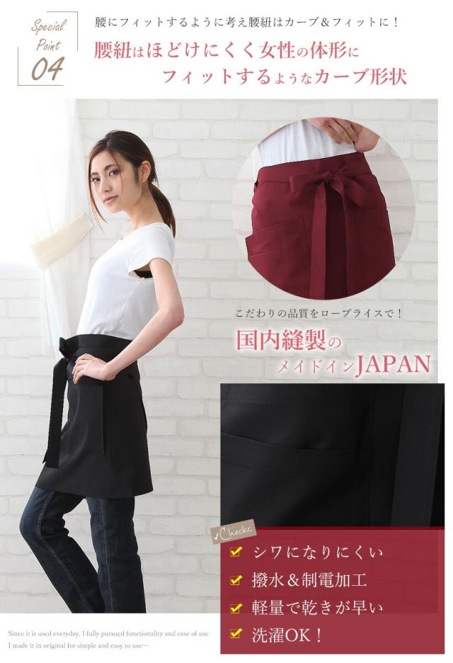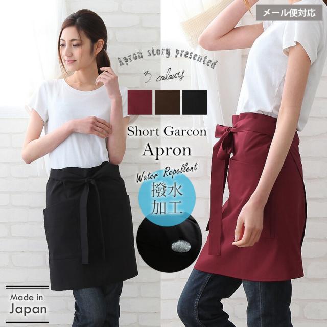 ショートギャルソンエプロン 業務用 日本製 撥水加工 制電 軽量 シワになりにくい おしゃれ プレゼント ギフト 母の日【メール便1枚のみ対応可能】【N】【Y】