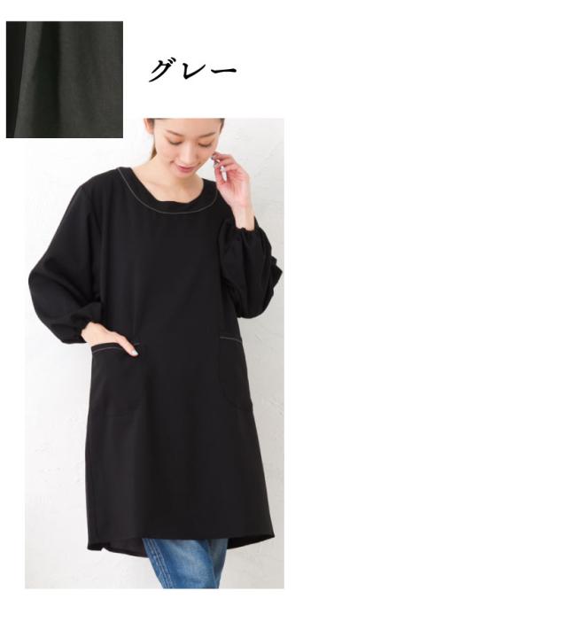 【メール便送料無料】バックタックスモックエプロン 日本製 割烹着 かっぽう着 エプロン おしゃれ 黒 無地 プレゼント ギフト 母の日【N】【M】