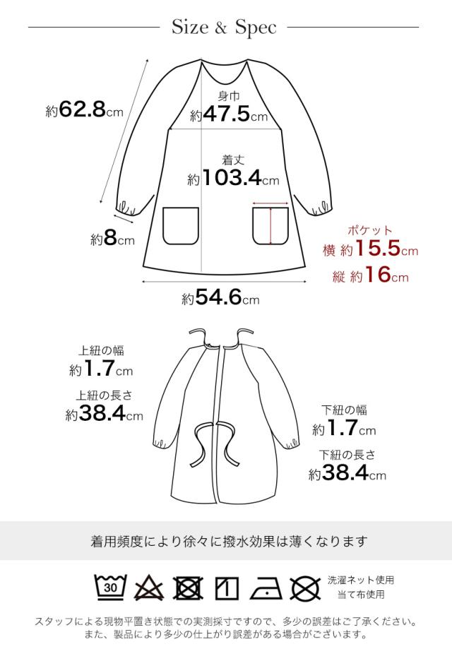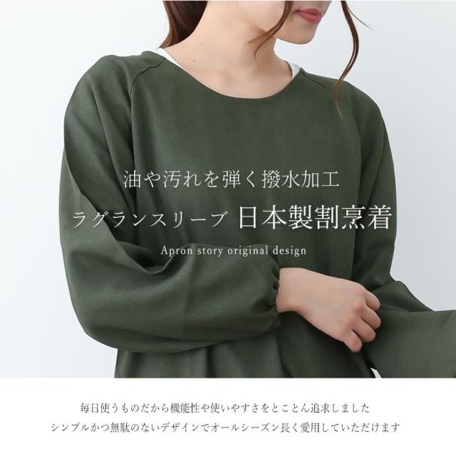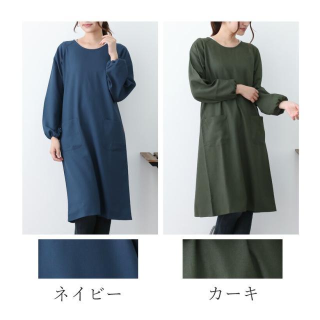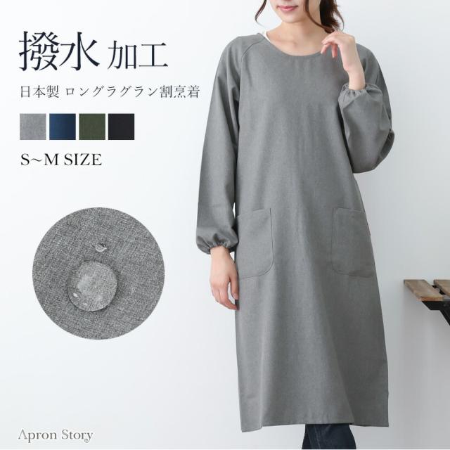 撥水ロングラグラン割烹着 おしゃれ 無地 スモック Sサイズ Mサイズ 割ぽう着 プレゼント ギフト【メール便1枚のみ送料無料】【M】【N】