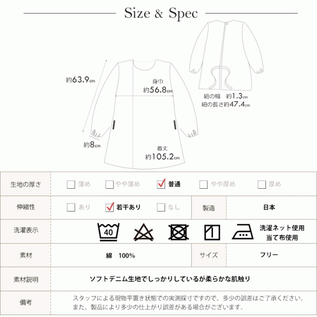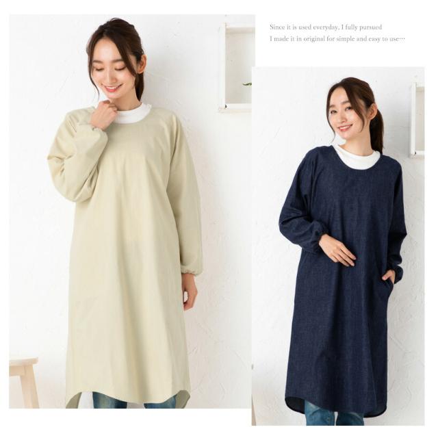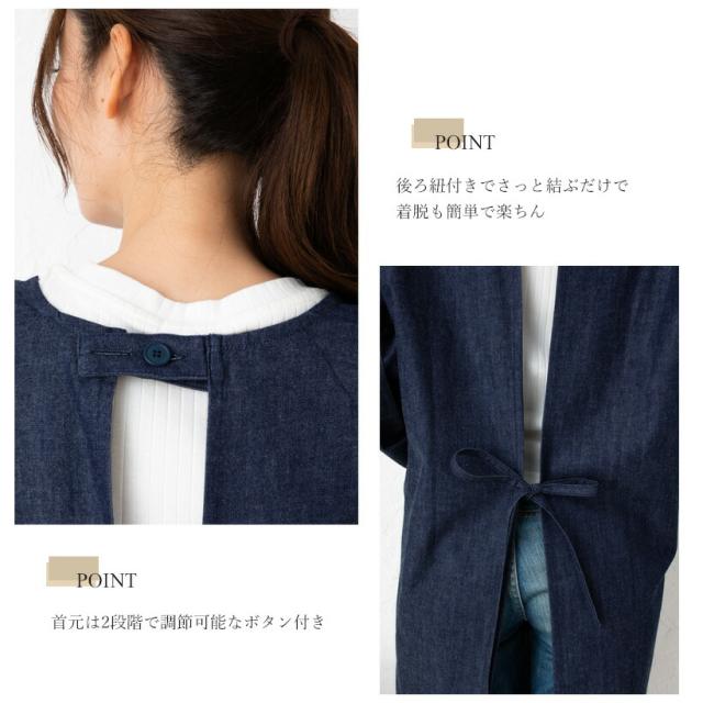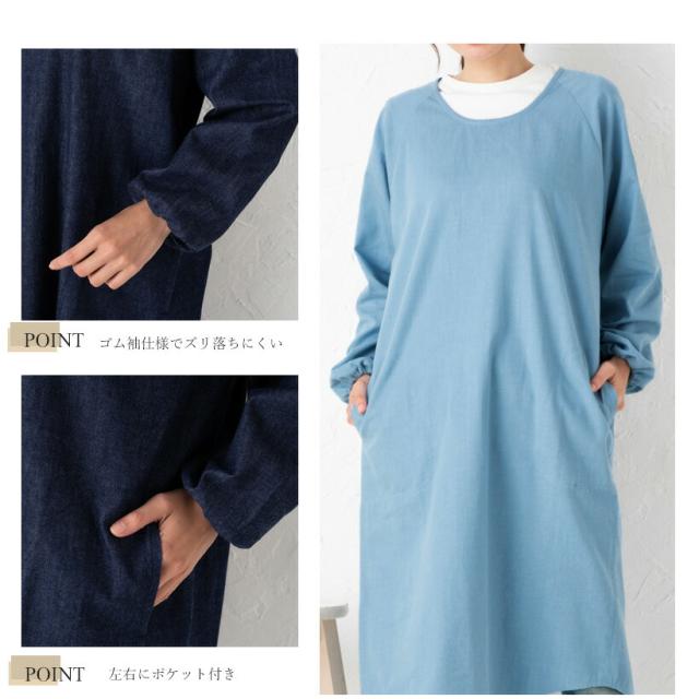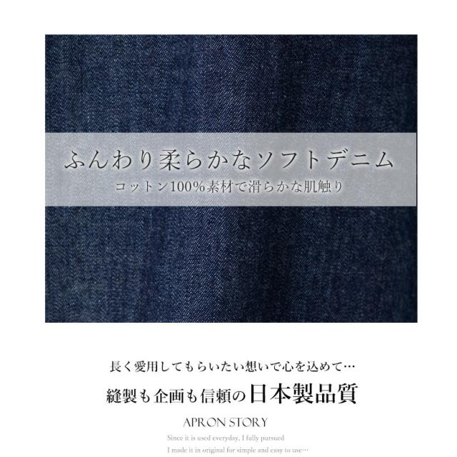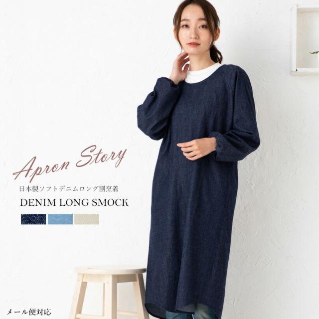 児島産ソフトデニム使用 ソフトデニムロング割烹着 日本製 スモック おしゃれ プレゼント ギフト 母の日 ロング【メール便1枚のみ対応可】【Y】