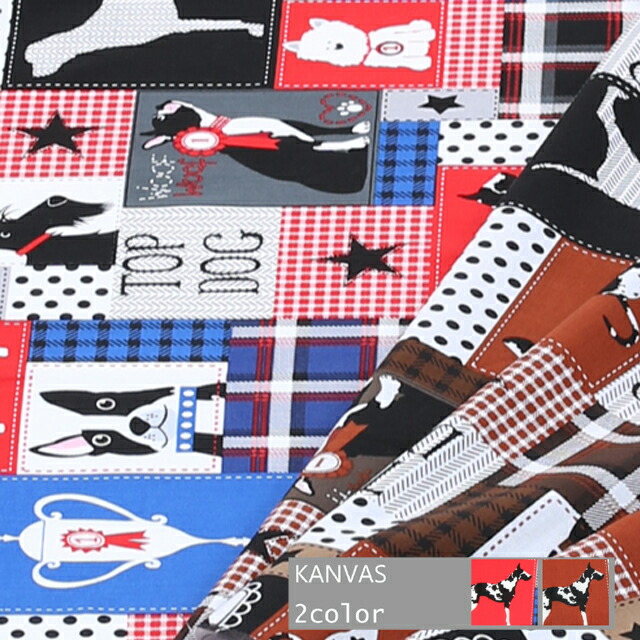 【メール便2mまで対応可】KANVAS(カンヴァス) パッチワークデザインの犬柄の生地【50cm単位】USAコットン 手芸 ハンドメイド かわいい 輸入生地 綿100% 綿シーチング【Y】