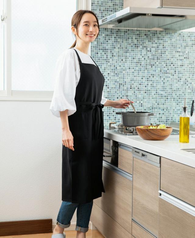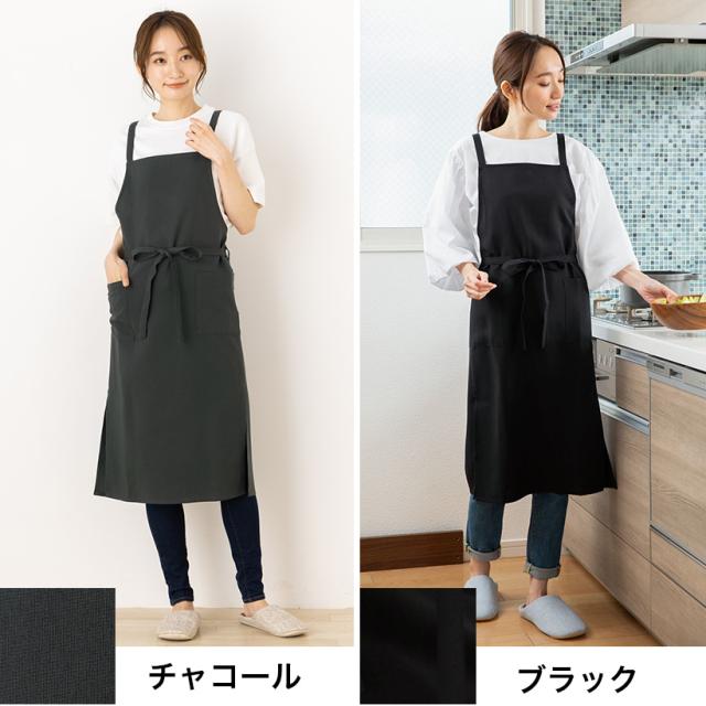 【メール便1枚のみ送料無料】ロングスリットエプロン 日本製 シンプル 無地 黒 かわいい おしゃれ プレゼント ギフト 母の日【N】【M】