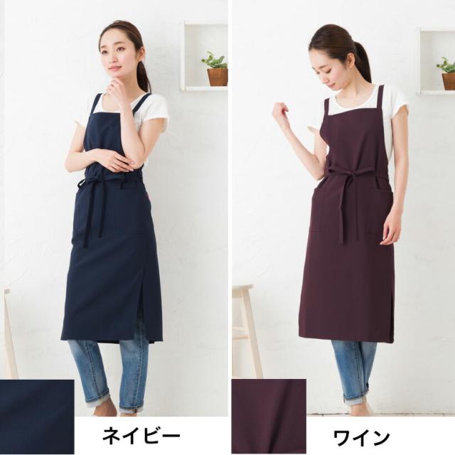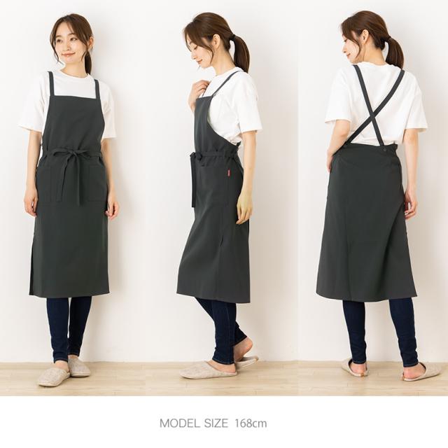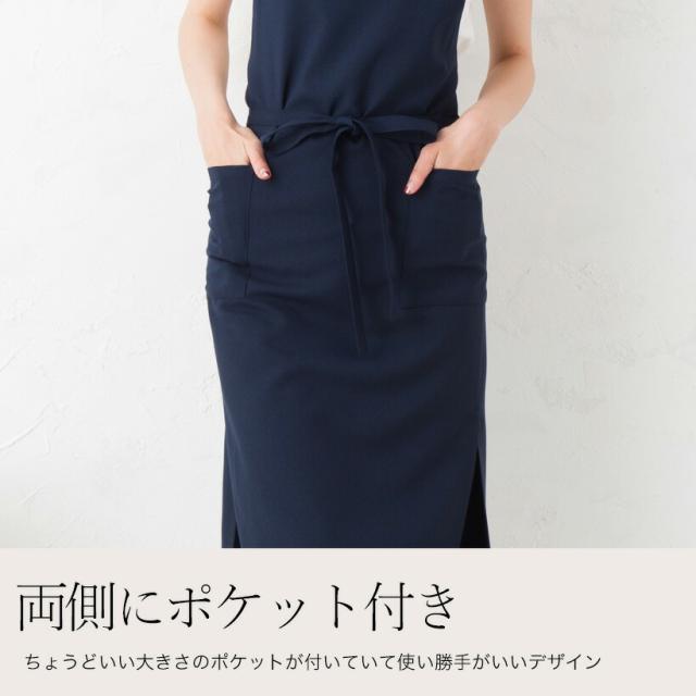 日本製 ロングスリットシンプルクロスエプロン。女性の体のラインをスッキリスマートに見せることにこだわった、ロングスリットエプロン。ポリエステルは、軽くて、洗濯してもしわになりくく、汚れ等も付きにくく、水に濡れても乾きやすいので、エプロンに最適な素材です。普段使いはもちろんのこと、お仕事等で長時間使用や頻繁に利用する場合にも最適な人気のエプロンです。