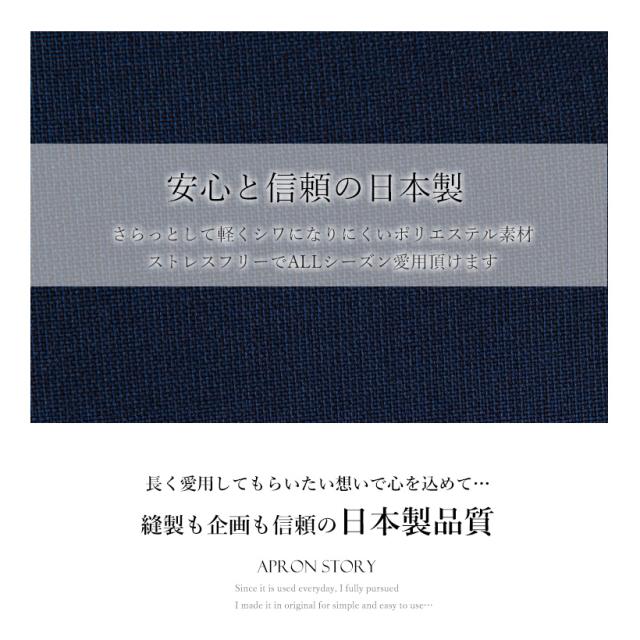 デザインやサイズ感にこだわった、丁寧な作りの日本製エプロン。 工場直営のエプロン専門店 エプロンストーリー ならではの高品質エプロンは、ギフトやプレゼントにも最適です。