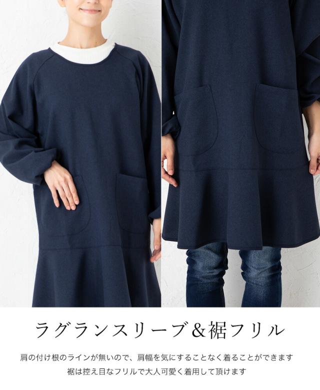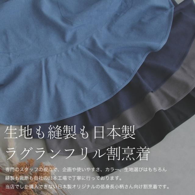ラグランフリル割烹着S 日本製 Sサイズ 小さいサイズ 小柄 かっぽう着 プレゼント ギフト 母の日【メール便1枚のみ対応可能】【N】【Y】