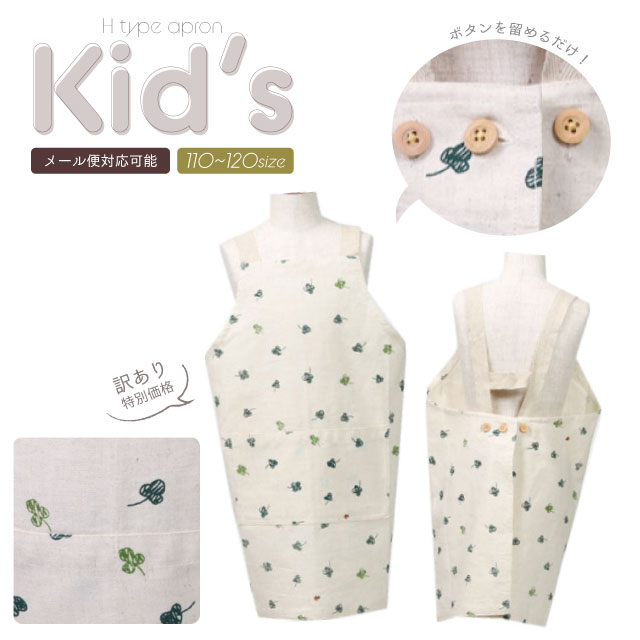 【訳あり品・メール便対応可】ペイントクローバーキッズエプロン【キッズエプロン】 110〜120 5〜8歳 H型 子ども用 キッズ【Y】