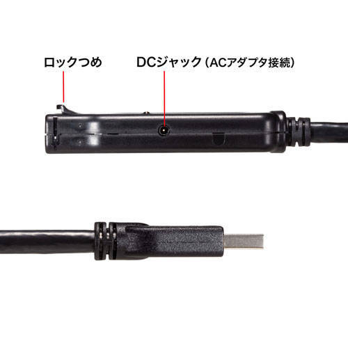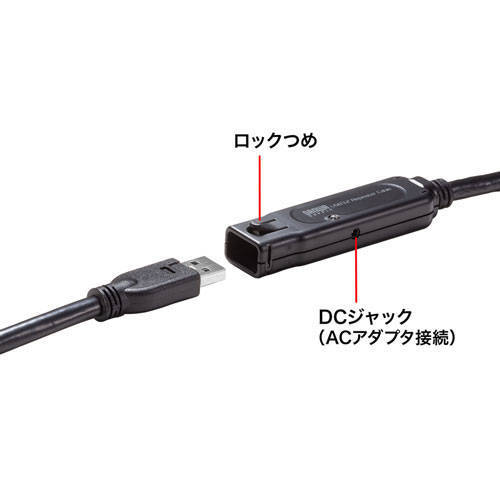 サンワサプライ USB3.2アクティブリピーターケーブル10m(抜け止めロック機構付き) KB-USB-RLK310