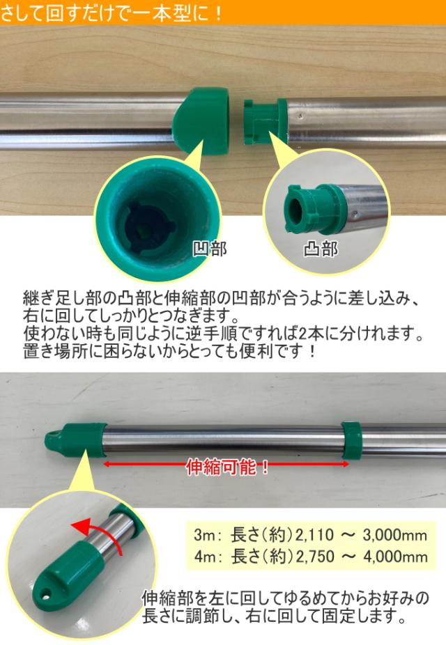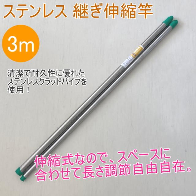 ステンレス継ぎ伸縮物干し竿 3m 耐荷重18kg (HB-3M) ステンレス 洗濯用品 物干し竿 物干竿 伸縮タイプ 洗濯物