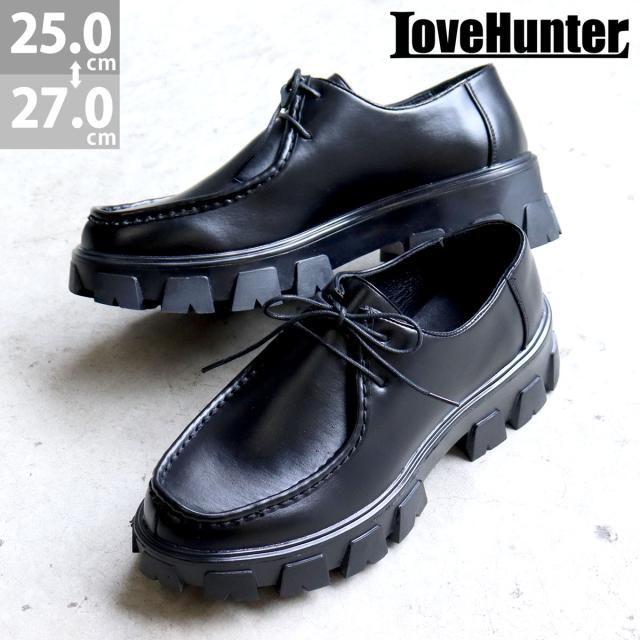 シューズ カジュアルシューズ メンズ 靴 紳士靴 厚底 5.5cmヒール ボリュームソール タンクソール 滑りにくい ラウンドトゥ 3E ゆったり 25.0cm〜27.0cm 黒 ブラック LOVEHUNTER ラブハンター No.1723