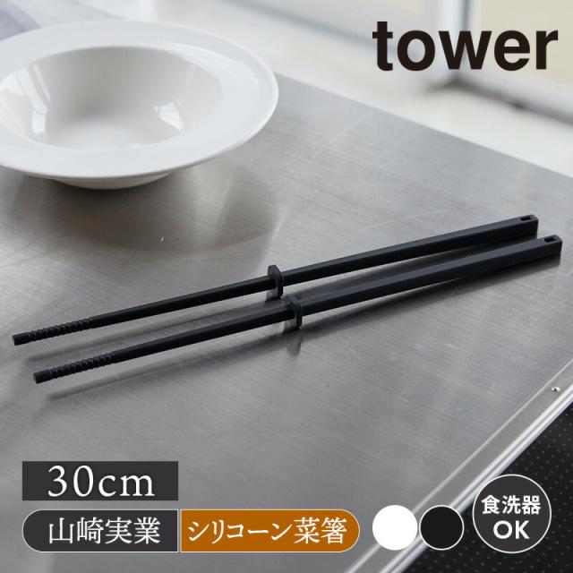 シリコーン菜箸 tower 山崎実業シリコーン菜箸トング tower 山崎実業 トング 菜箸 サラダトング シリコン 調理器具 食洗機対応 ツール 耐熱 白 黒 モノトーン YAMAZAKI タワーシリーズ