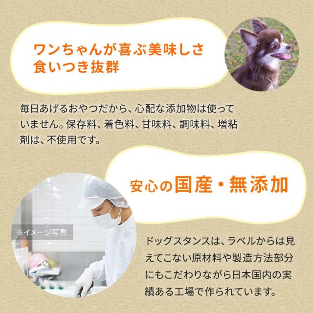 ドッグスタンスはラベルからは見えてこない原材料や製造方法部分にもこだわりながら日本国内の実績ある工場で作られています。