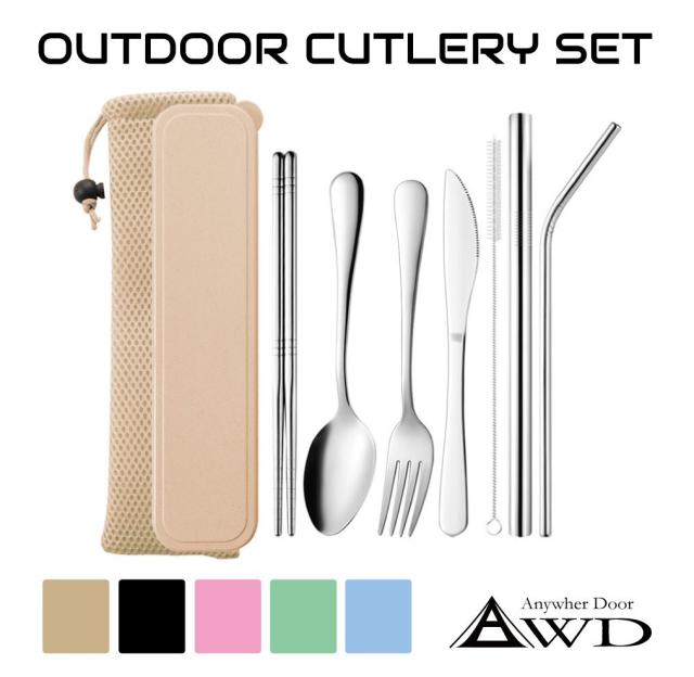 カトラリー カトラリーセット 収納 ステンレス 折り畳み 収納袋 金属製 軽量 食器セット キャンプ ソロキャンプ アウトドア カトラリー7点セット 専用ケース&袋付 全5色 AWD-TW7 メール便(ネコポス)送料無料