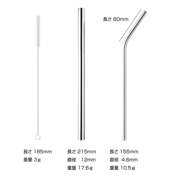 箸:Φ11 × 185mm ナイフ:W24 × H173mm フォーク:W24 × H173mm スプーン:W38 × H176mm ストロー(直線):Φ12 × H215mm ストロー(曲線):Φ4.6 × H155mm 清掃ブラシ:H185mm |