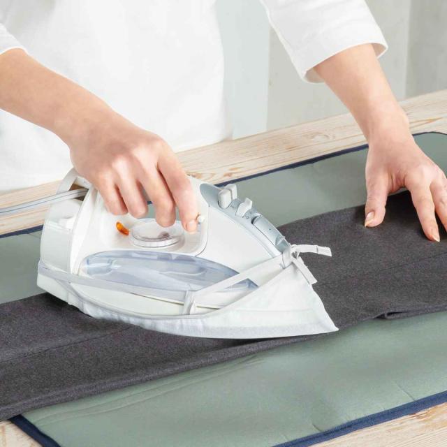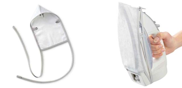 アイロンに装着するタイプのあて布で、衣類のてかりをおさえることができます。あて布をずらす必要がないので、衣類の折り目を直接確認しながらスムーズにアイロンがけができます。