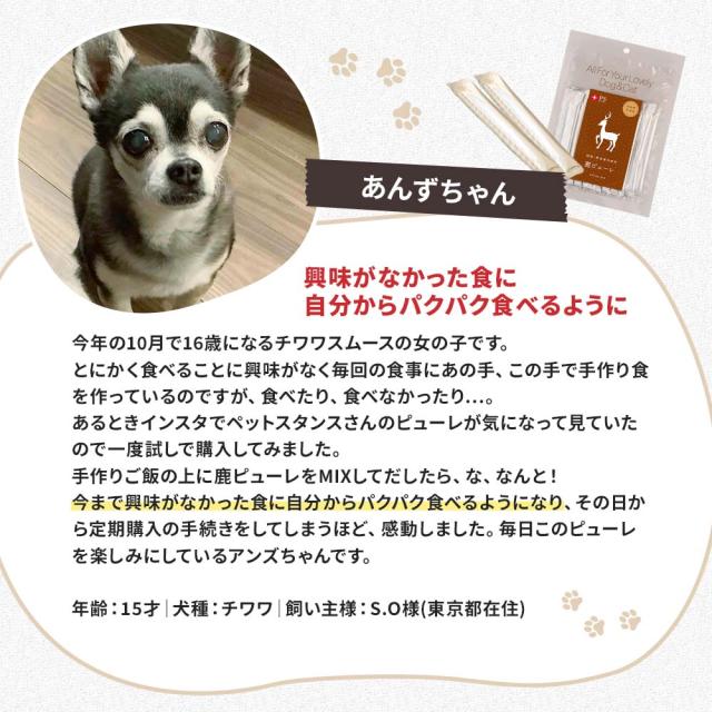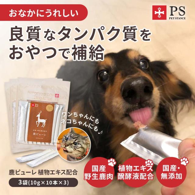 ネコポス送料無料 ドッグスタンス 食いつき抜群 鹿肉ピューレ お得なお試しセット 鹿ピューレ(植物エキス配合)10gx30本 スティックタイプ 国産 無添加 犬用 オヤツ シニア犬 高齢犬 成犬 パピー DOG STANCE ドッグフード