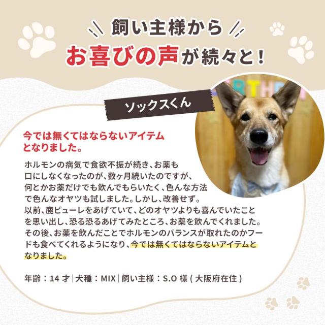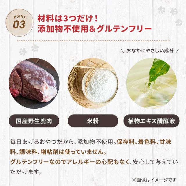 ペットの立場で考えた、鹿肉でできた無添加オヤツです。