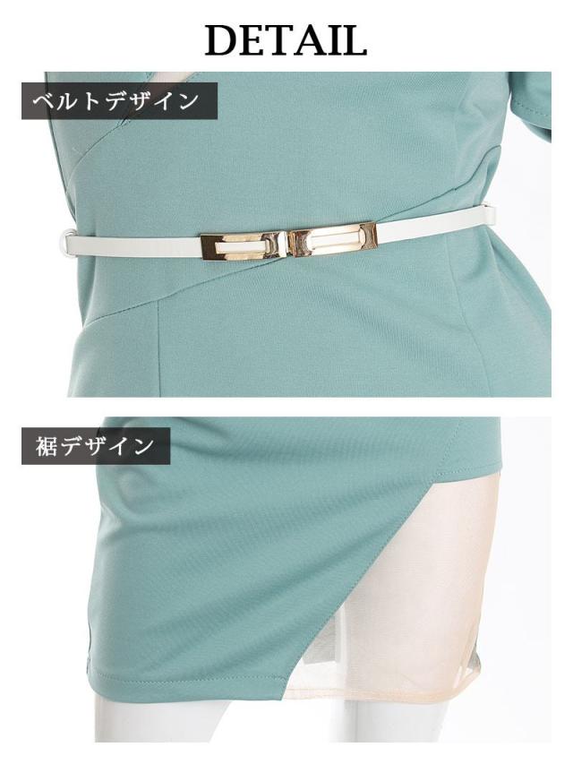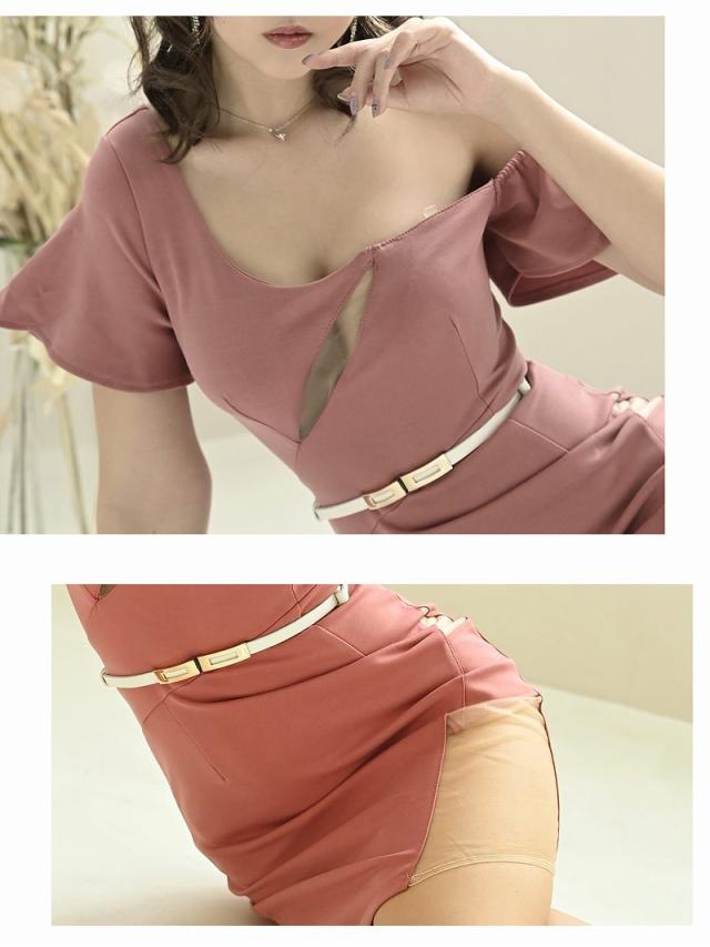 ☆付属の白ベルトでウエストを引き締めて脚長効果もプラスしちゃうキャバドレスは春らしいパステルカラーから定番のブラックまで揃った色違いで欲しくなるワンカラードレスです。