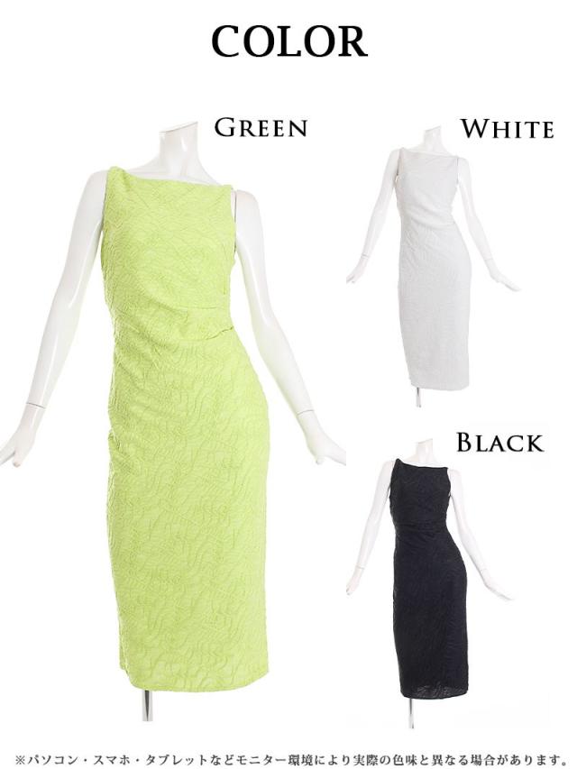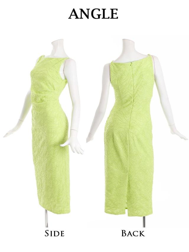 ☆今季マストカラーの鮮やかなグリーンが目を惹くタイトドレスは程よい肌魅せ感でドレッシーに着こなしていただくことで同伴でも好印象間違いなしの上品な膝丈ワンピースです♪