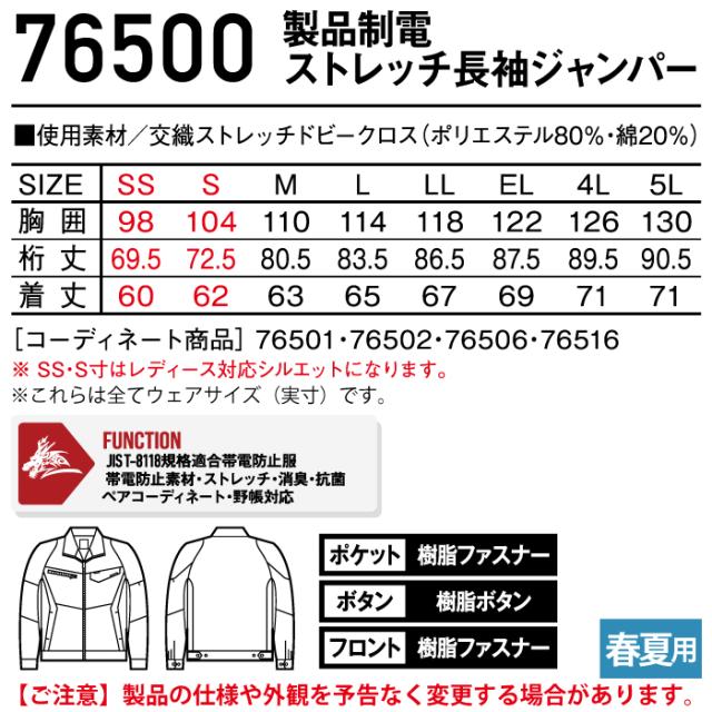 【76500 製品制電ストレッチ長袖ジャンパー】