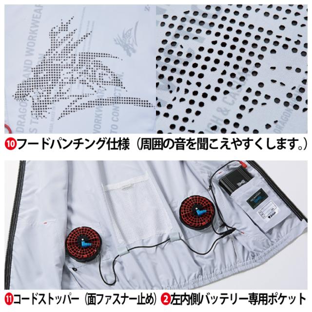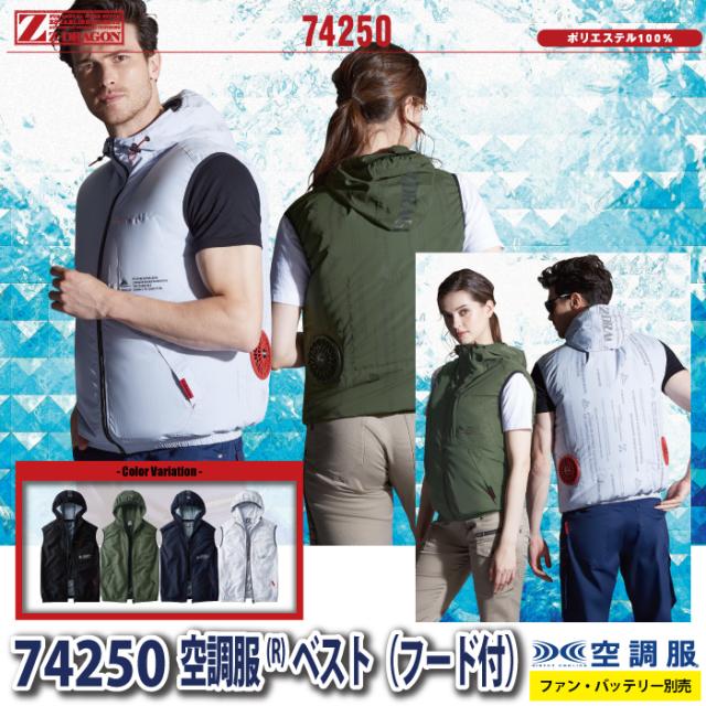 空調服 自重堂 Z-DRAGON 作業服 74250 空調服ベスト(フード付) EL 作業着 春夏用 熱中症 レジャー アウトドア スポーツ