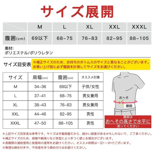 XXXLサイズ:肩幅47−50cm、腹囲88−105cm