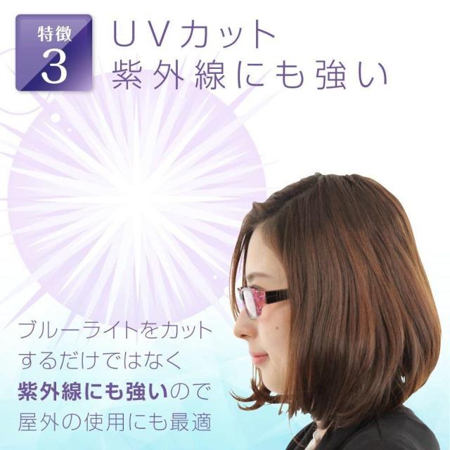 太陽からのブルー光線も防いでくれます。UVカットレンズを使用しているので、紫外線も安心。