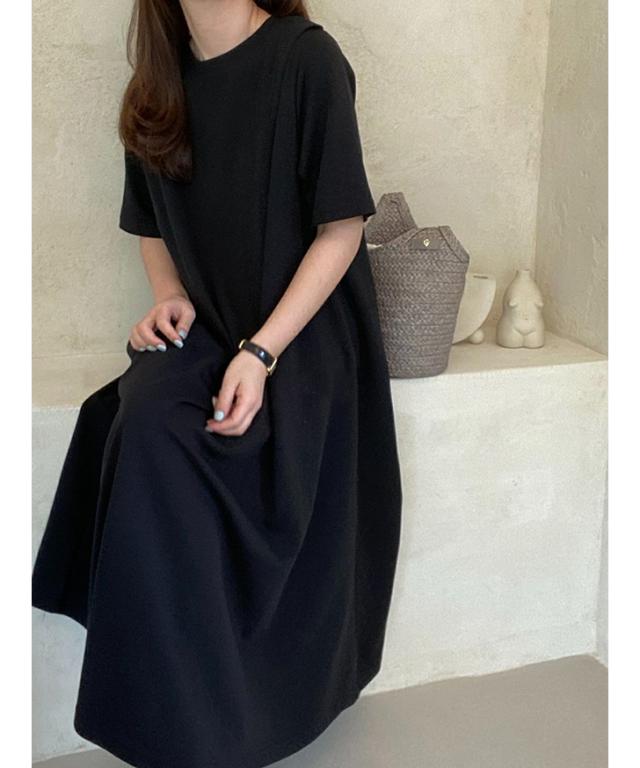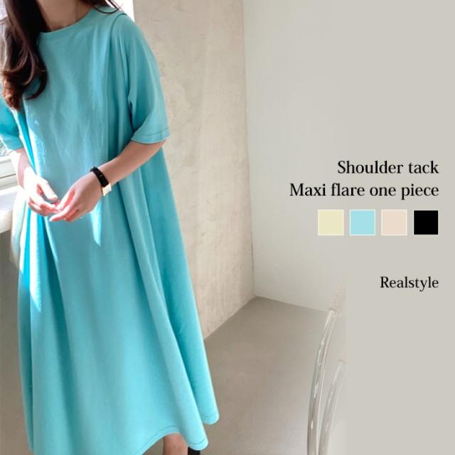 新作 ワンピース レディース マキシ丈 ロング 夏 30代 40代 半袖 シンプル カジュアル フレア 体型カバー ゆったり 綿混 通勤