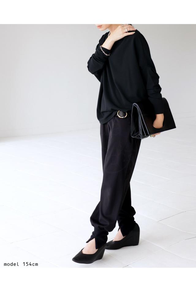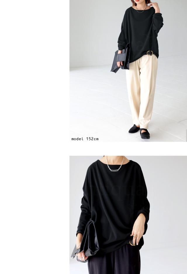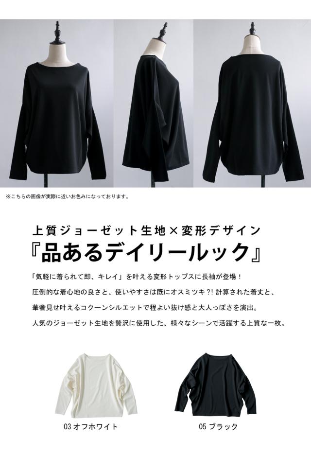 ay-00031 きれいめ 変形 ドルマン コクーン シンプル カットソー プルオーバー カットジョーゼット 伸縮 ストレッチ ゆったり 落ち感 オーバーサイズ 体型カバー 大きいサイズ