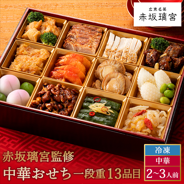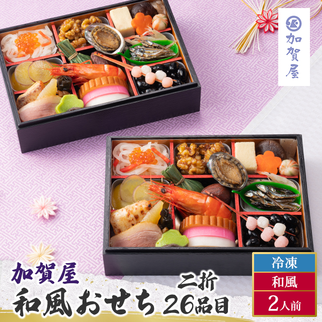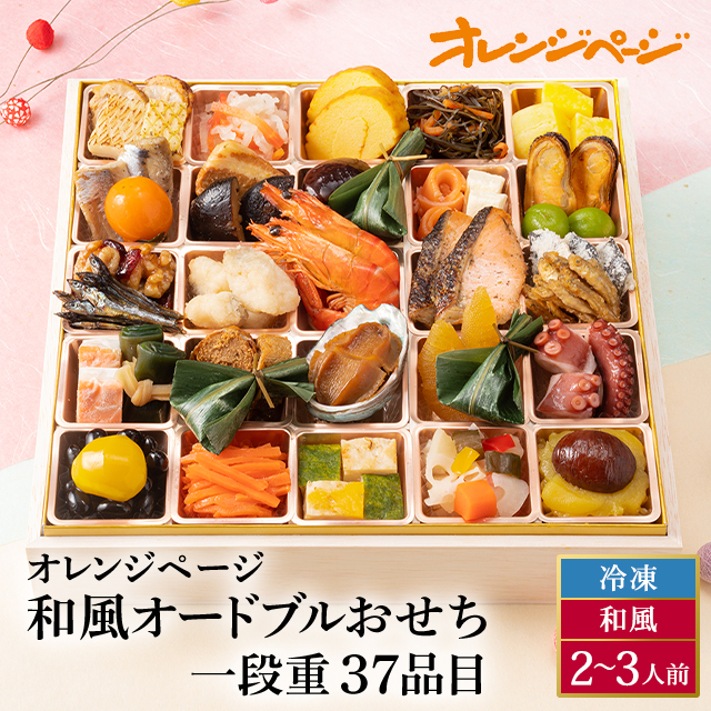 五色なます/味付けいくら/練りきんとん/栗の甘露煮/黒豆煮/数の子松前/紅白かまぼこ/伊達巻/鮭の西京焼き/お祝い海老煮/若桃甘露煮/翡翠銀杏串/田作り