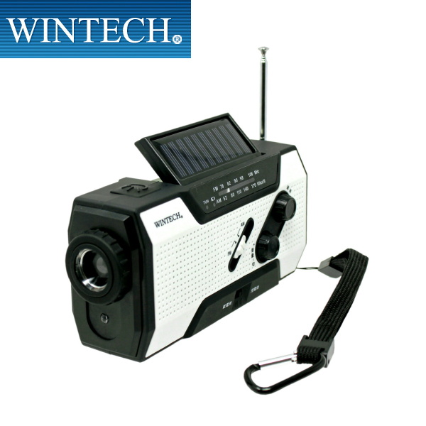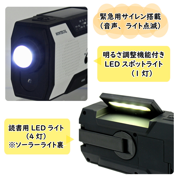 手回し充電ラジオライト ソーラー充電可能 KDR-201WP ホワイト 防雨仕様 緊急用サイレン搭載 アウトドアや災害時に便利 WINTECH/ウィンテック